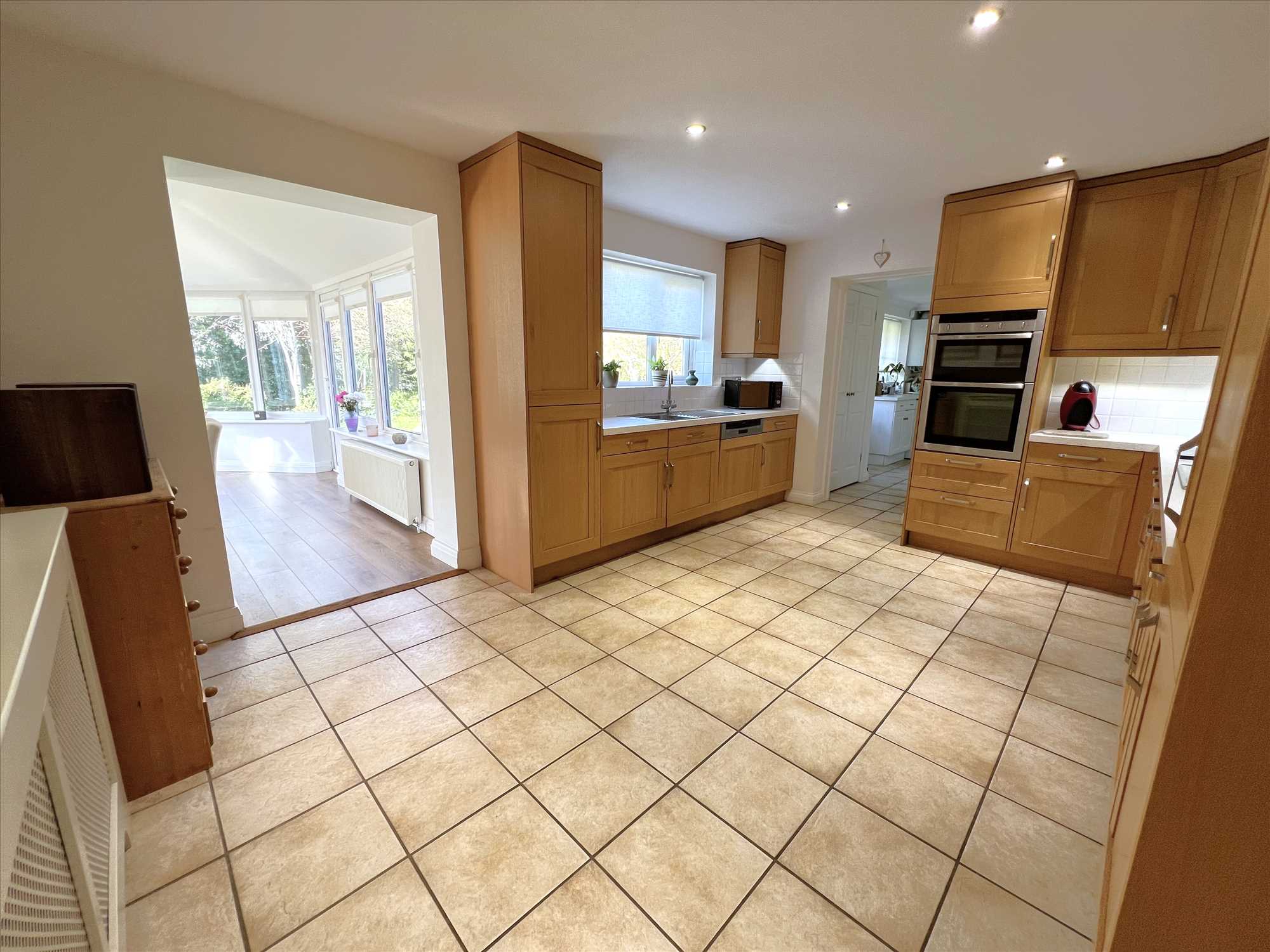 The accommodation is spread over three floors and has been thoughtfully extended throughout. Briefly comprises on the ground floor of a spacious welcoming hallway, cloakroom, 23ft dual aspect entertaining/family room with doors opening onto the garden, lounge, dining room and contemporary kitchen/breakfast room that opens out onto a large garden room with vaulted ceilings being a superb place to relax with friends and family. The utility room is off the kitchen with access to the double garage and garden. Also on this floor is a fully equipped study. To the first floor off the large landing space can be found the principal bedroom, with two sets of floor to ceiling fitted wardrobes and a modern en-suite and dressing area. Across the landing is a further large double bedroom with en-suite shower room, three more double bedrooms serviced by a modern family bathroom. To the second floor is a spacious landing space with access to eaves storage and a 17ft bedroom which makes the perfect guest bedroom or teenagers room. Outside is a secluded landscaped gardens that surround the property, the rear garden offers a generous patio area which is the perfect location for outside entertaining, To one side is a further patio area and to the other side is a storage area with shed. To the front is a driveway offering parking for several cars approaching a generous sized double garage, with a further area of lawn and landscaped shrubs.